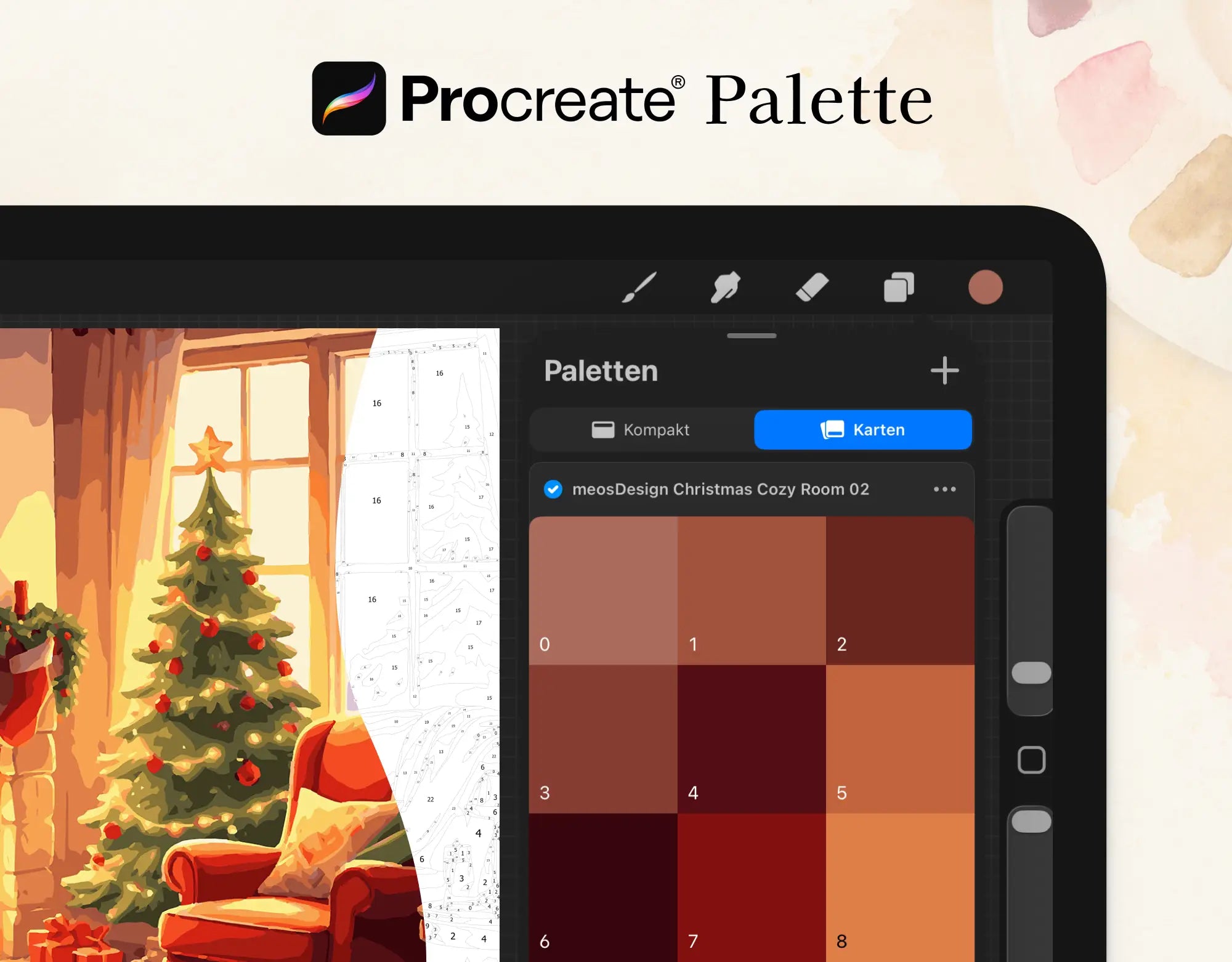 Im Procreate Ordner befinden sich Vorlage und Palette, die mit jeweils einem Klick direkt in Procreate importiert werden.