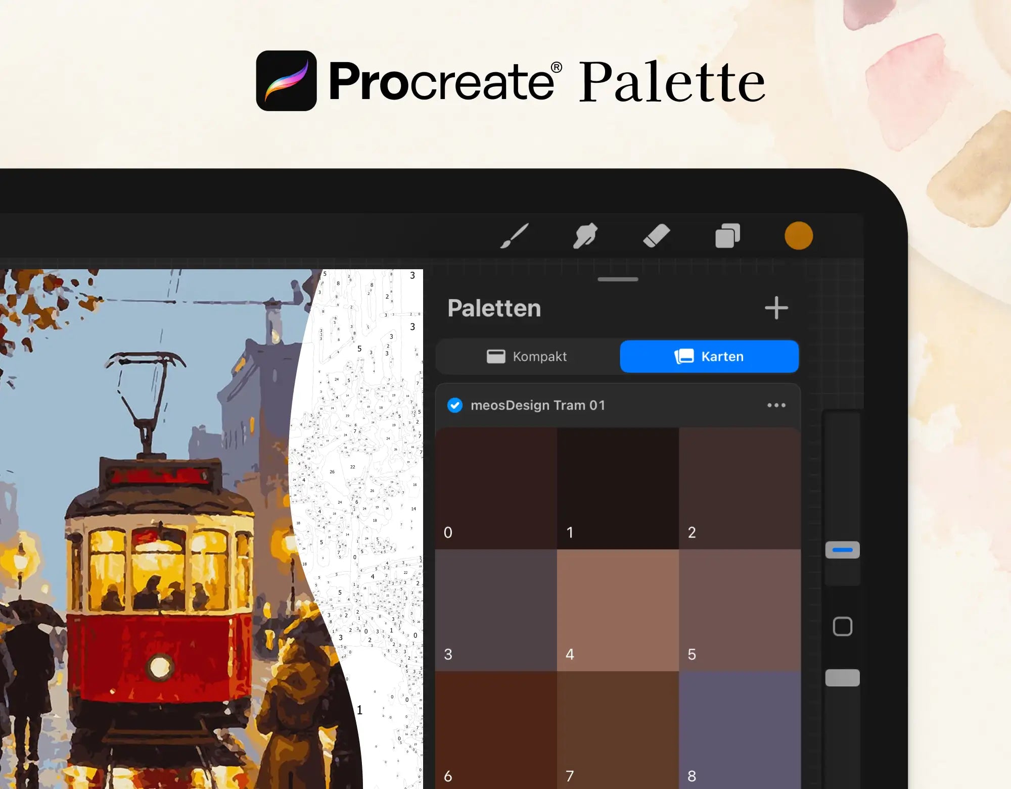 Im Procreate Ordner befinden sich Vorlage und Palette, die mit jeweils einem Klick direkt in Procreate importiert werden.