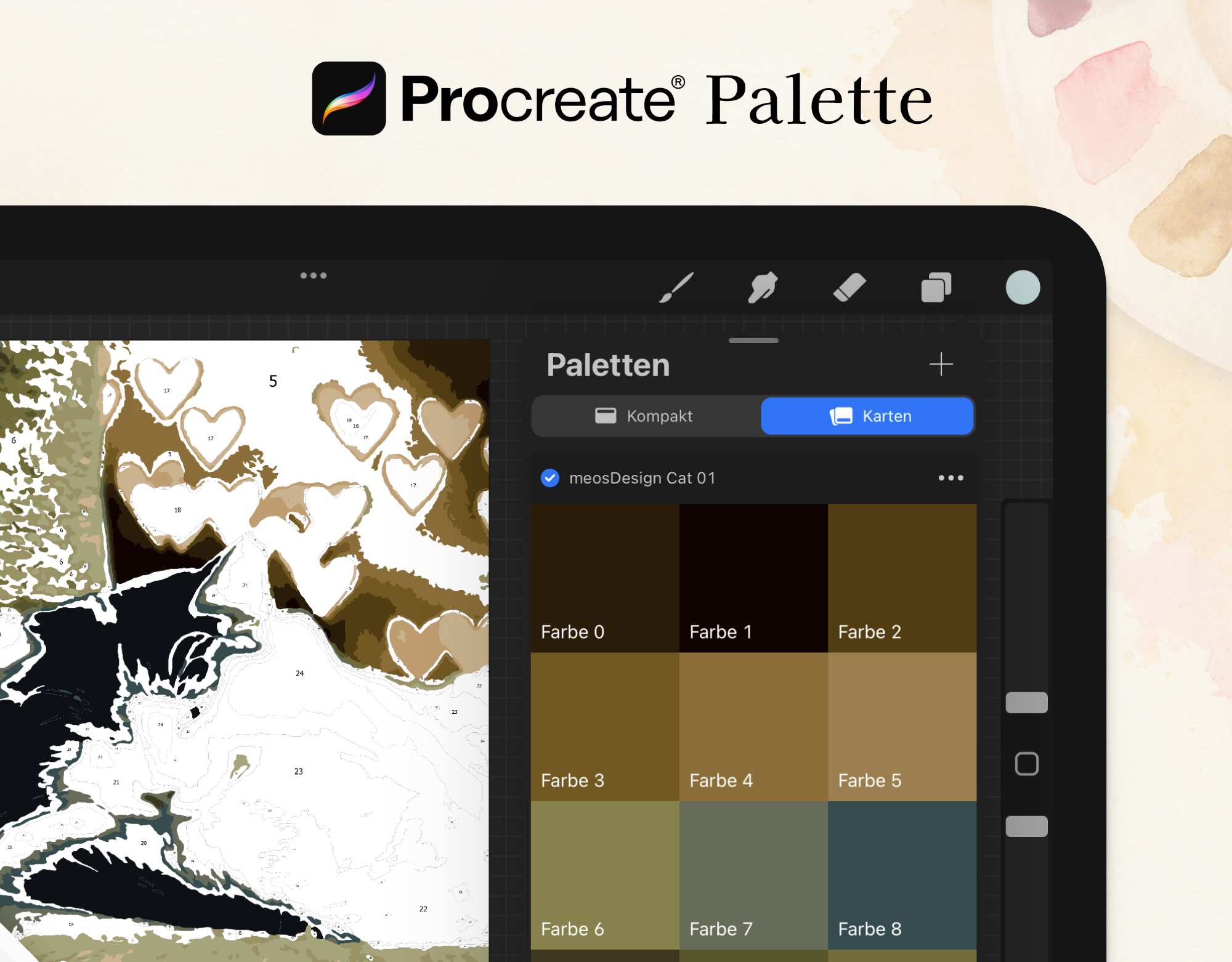 Im Procreate Ordner befinden sich Vorlage und Palette, die mit jeweils einem Klick direkt in Procreate importiert werden.