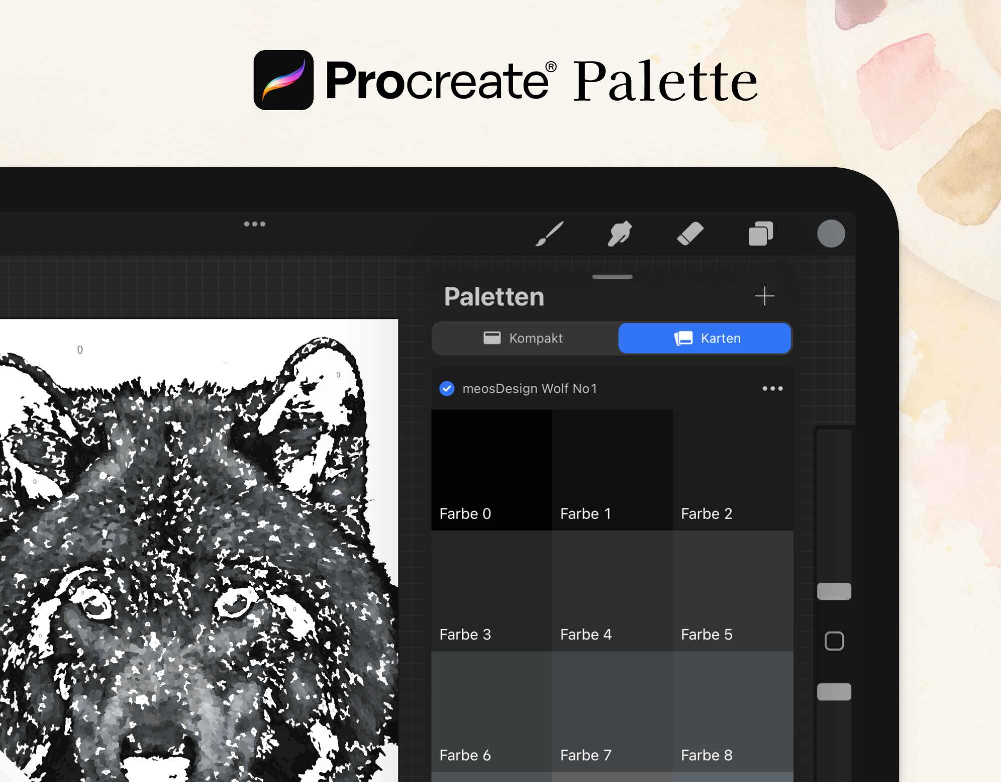Im Procreate Ordner befinden sich Vorlage und Palette, die mit jeweils einem Klick direkt in Procreate importiert werden.