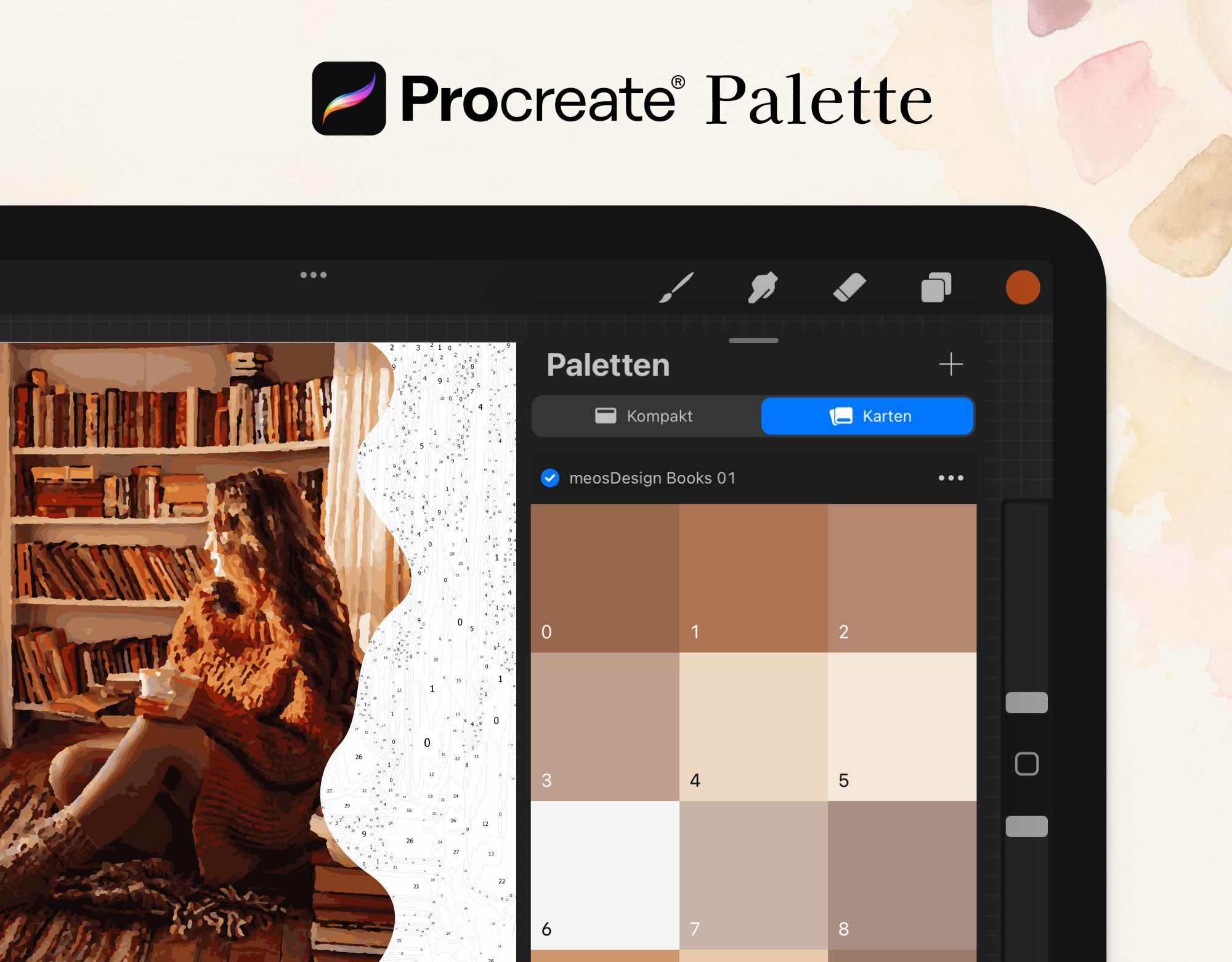 Im Procreate Ordner befinden sich Vorlage und Palette, die mit jeweils einem Klick direkt in Procreate importiert werden.