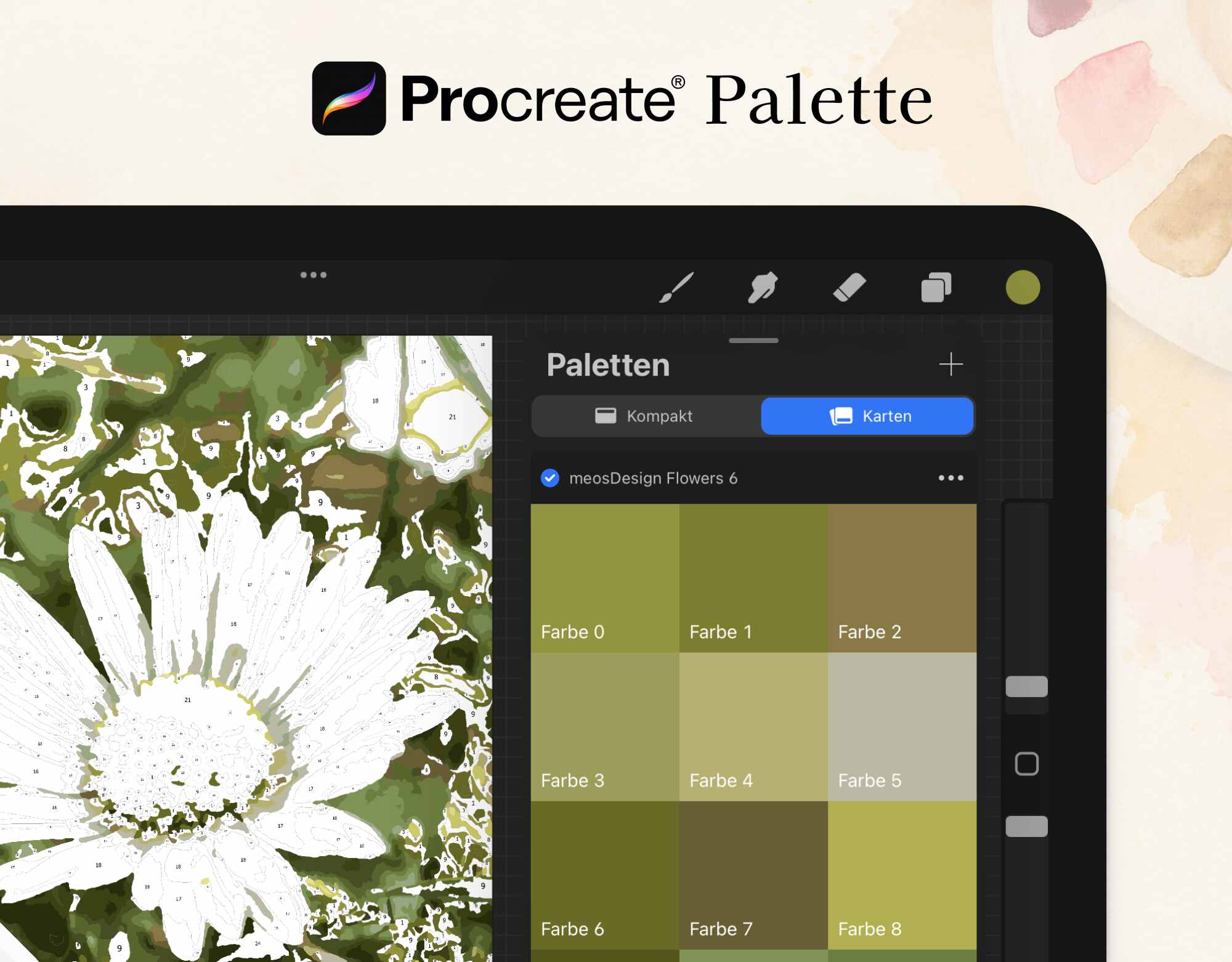 Im Procreate Ordner befinden sich Vorlage und Palette, die mit jeweils einem Klick direkt in Procreate importiert werden.