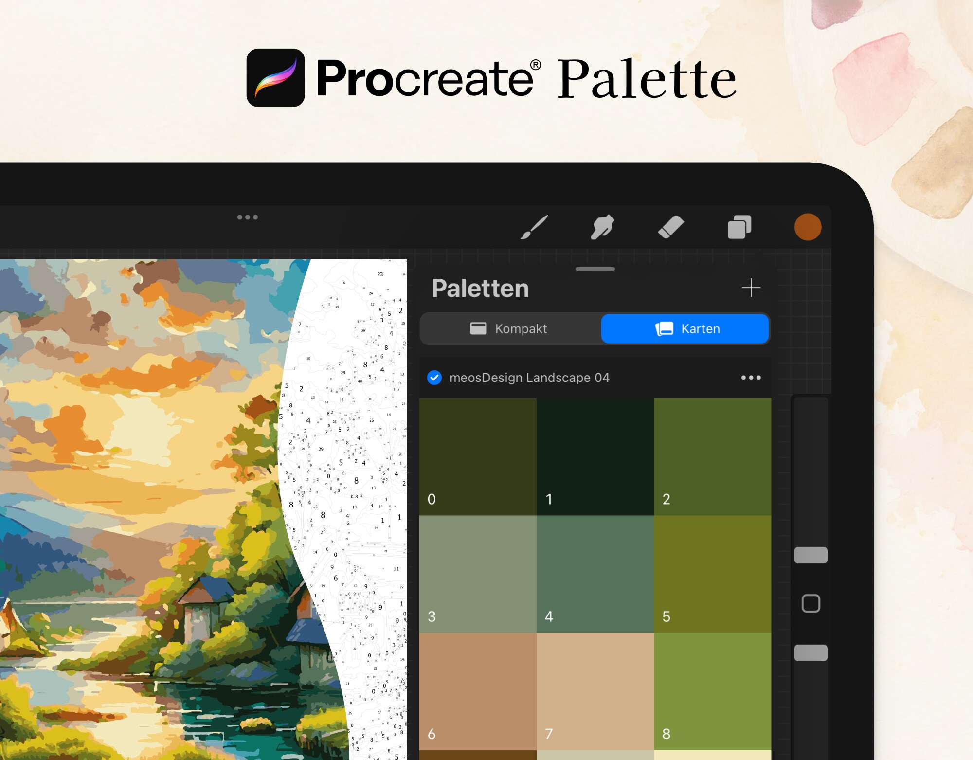 Im Procreate Ordner befinden sich Vorlage und Palette, die mit jeweils einem Klick direkt in Procreate importiert werden.