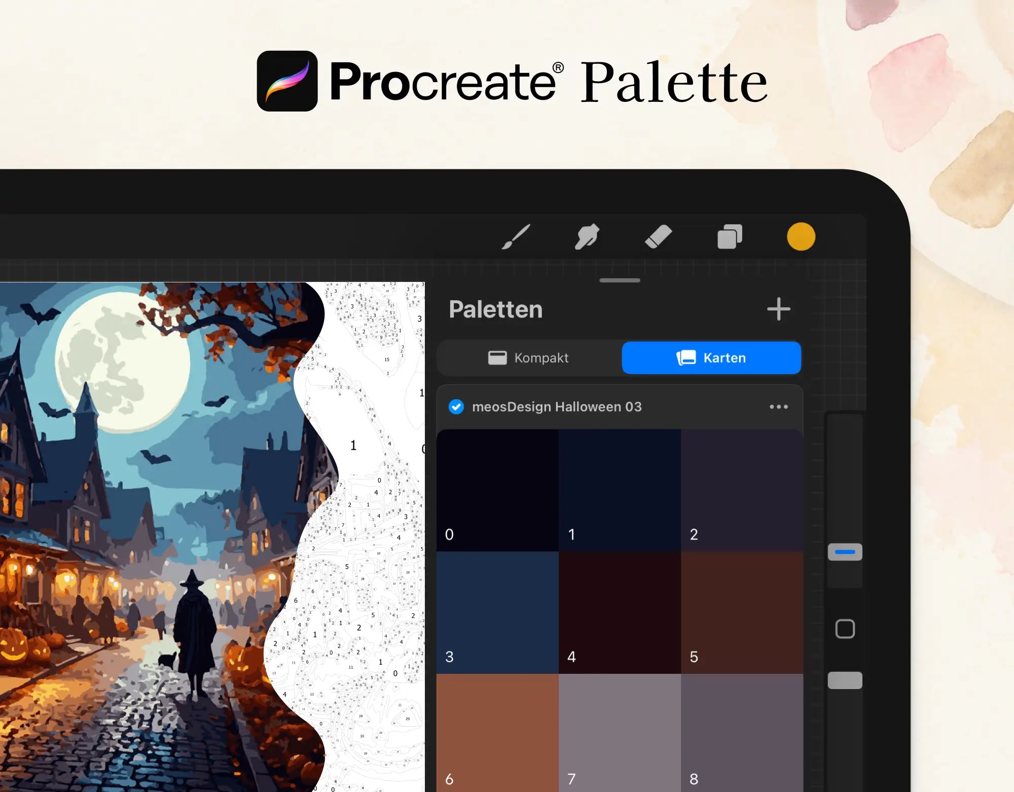 Im Procreate Ordner befinden sich Vorlage und Palette, die mit jeweils einem Klick direkt in Procreate importiert werden.