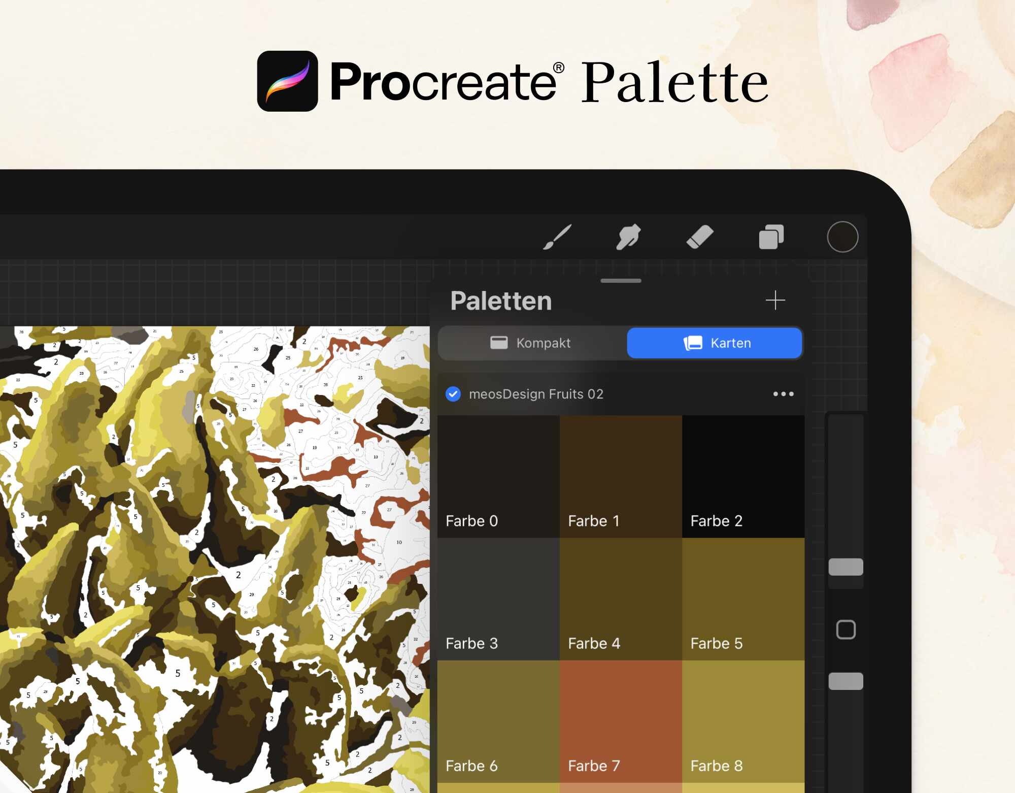 Im Procreate Ordner befinden sich Vorlage und Palette, die mit jeweils einem Klick direkt in Procreate importiert werden.