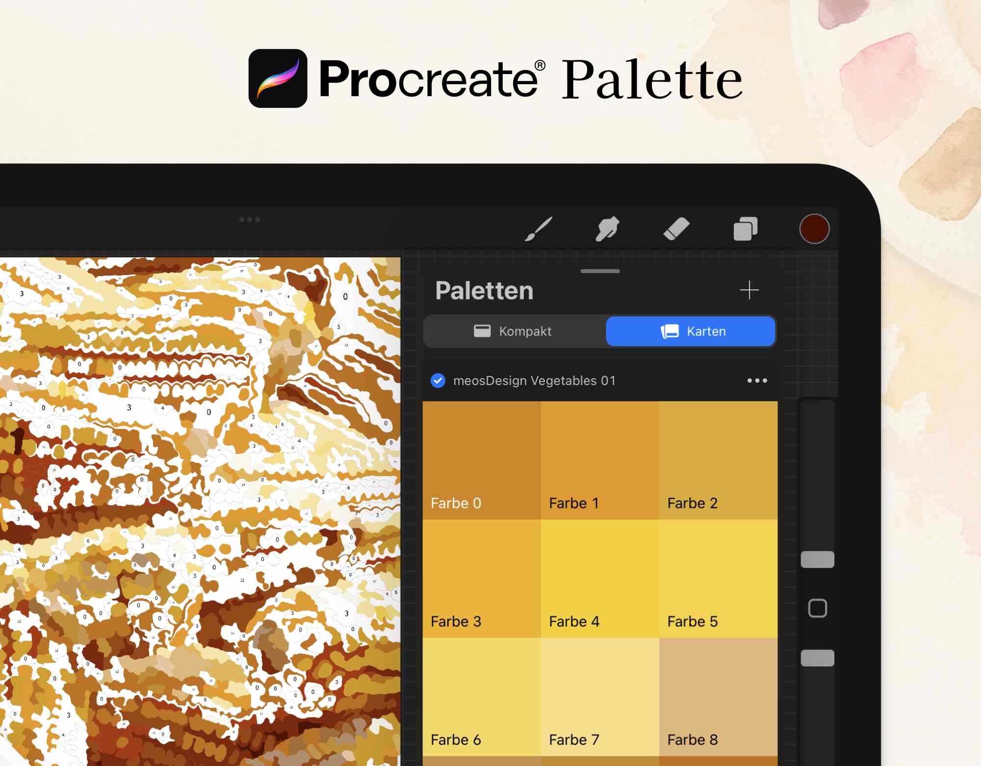 Im Procreate Ordner befinden sich Vorlage und Palette, die mit jeweils einem Klick direkt in Procreate importiert werden.