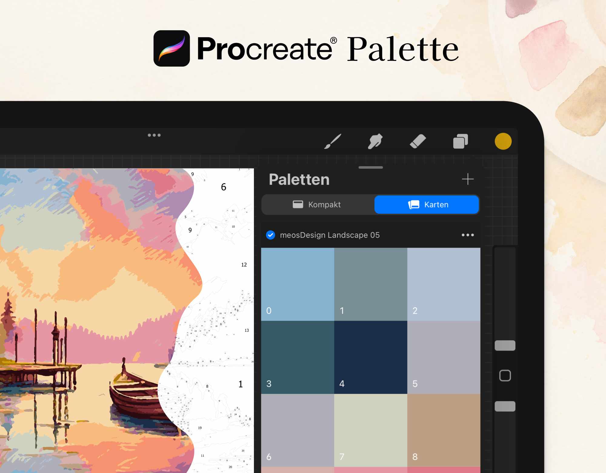 Im Procreate Ordner befinden sich Vorlage und Palette, die mit jeweils einem Klick direkt in Procreate importiert werden.