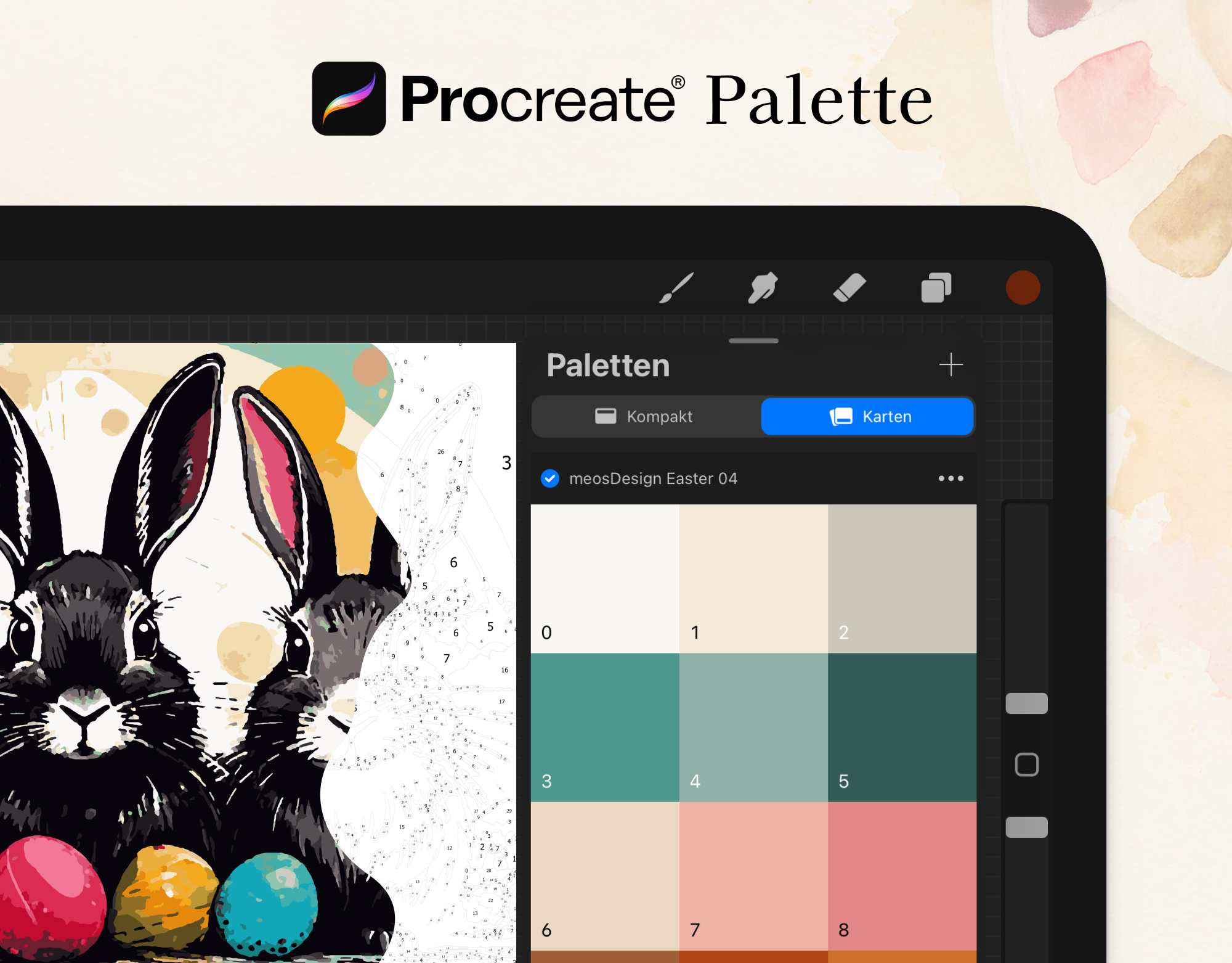 Im Procreate Ordner befinden sich Vorlage und Palette, die mit jeweils einem Klick direkt in Procreate importiert werden.